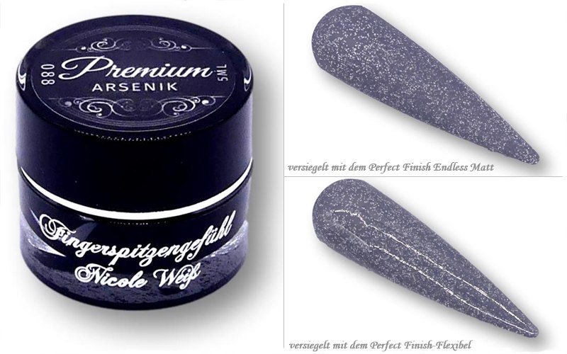 Cremiges Farbgel in einem dunklen Grauton mit weißen Sprenkeln.