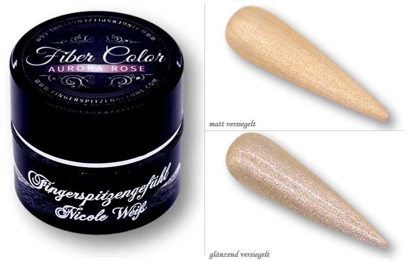 Bei der Farbe Aurora Rosé handelt es sich um ein Effekt-Gel in einem hellen Beige/Aurora-Ton mit rosa Schimmer mit einer semitransparenten Deckkraft