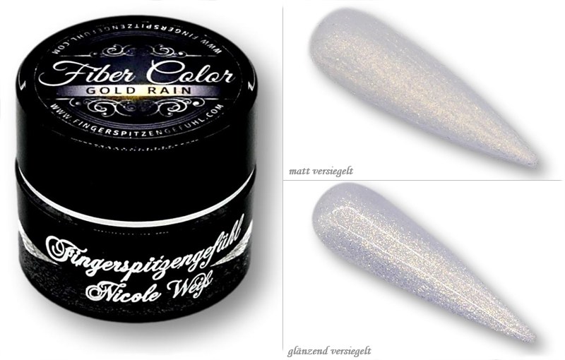 Bei der Farbe Gold Rain handelt es sich um ein semi-deckendes Glitzer-Effekt-Gel mit Gold-Partikeln