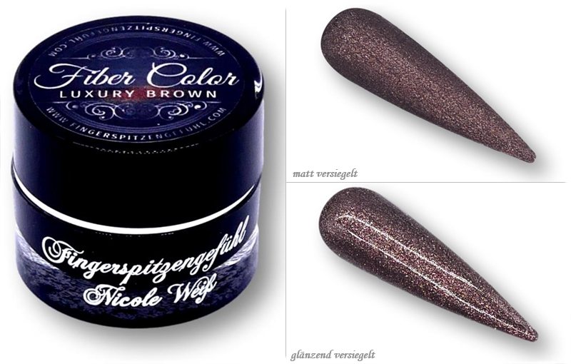 Bei der Farbe Luxury Brown handelt es sich um ein glitzerndes Dunkel-Braun mit hoher Deckkraft