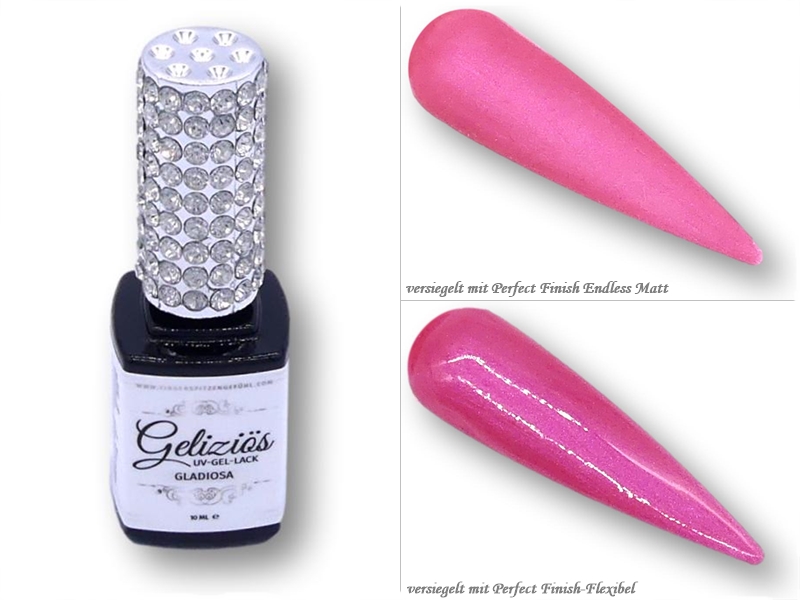 Lieferumfang: 10 ml UV-Lack "Geliziös" in schwarzer Flasche mit Glitzerdeckel + 1 Glasnugget.