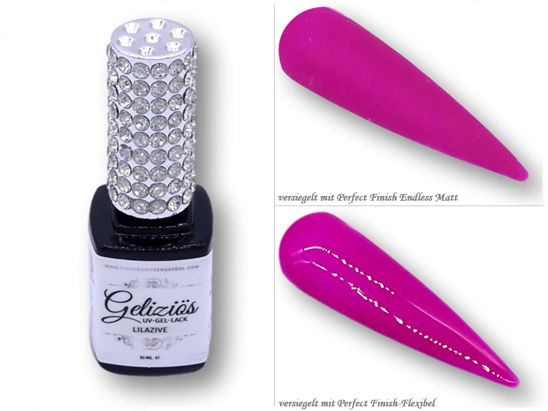 Lieferumfang: 10 ml UV-Lack "Geliziös" in schwarzer Flasche mit Glitzerdeckel + 1 Glasnugget.