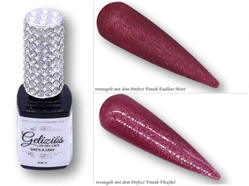 Lieferumfang: 10 ml UV-Lack "Geliziös" in schwarzer Flasche mit Glitzerdeckel + 1 Glasnugget.