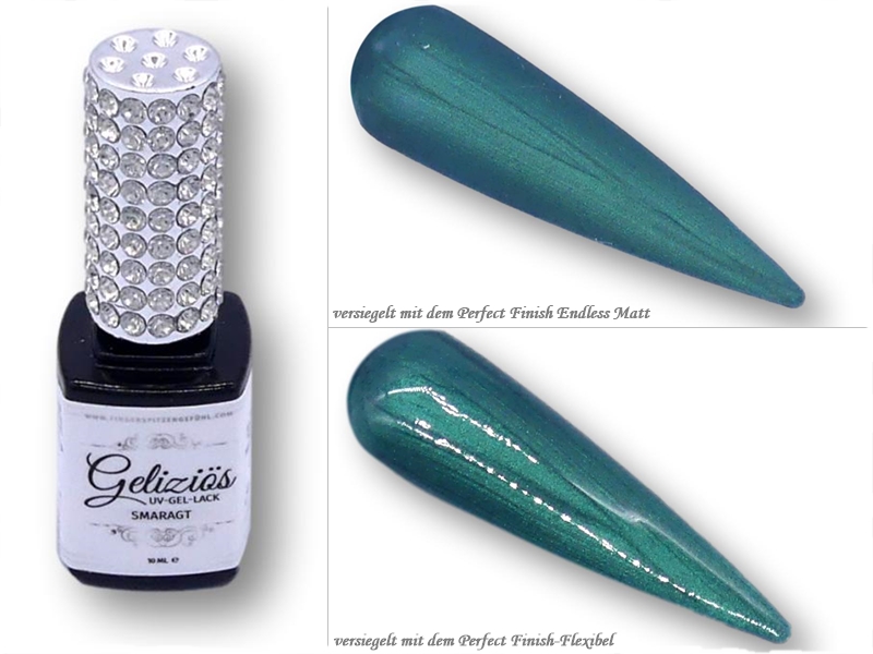 Lieferumfang: 10 ml UV-Lack "Geliziös" in schwarzer Flasche mit Glitzerdeckel + 1 Glasnugget.