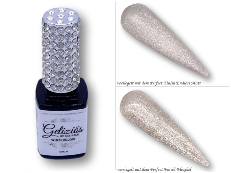Lieferumfang: 10 ml UV-Lack "Geliziös" in schwarzer Flasche mit Glitzerdeckel + 1 Glasnugget.