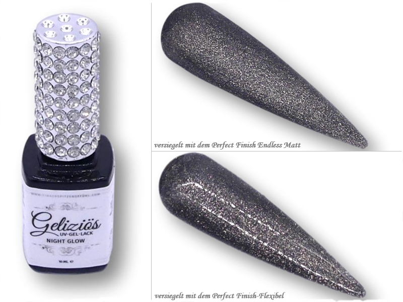 Lieferumfang: 10 ml UV-Lack "Geliziös" in schwarzer Flasche mit Glitzerdeckel + 1 Glasnugget.
