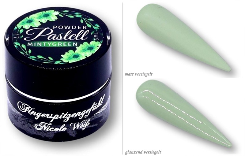 Für den Auftrag empfehlen wir einen Fullcover-Pinsel. "Mintygreen" ist ein mint-grüner purer Pastell-Ton