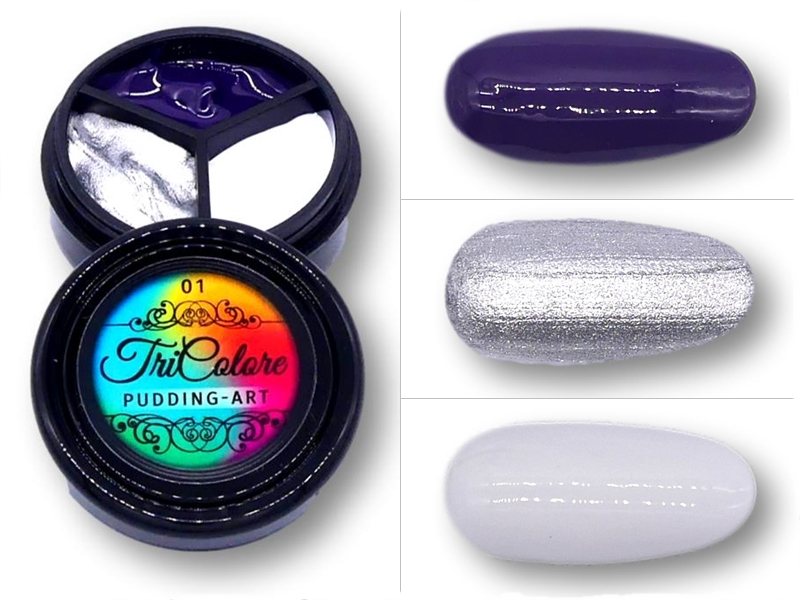 Variante 01: Weiß, Silber, Dunkel-Lila - drei cremige Farbgele in einem Tiegel mit höchster Deckkraft.