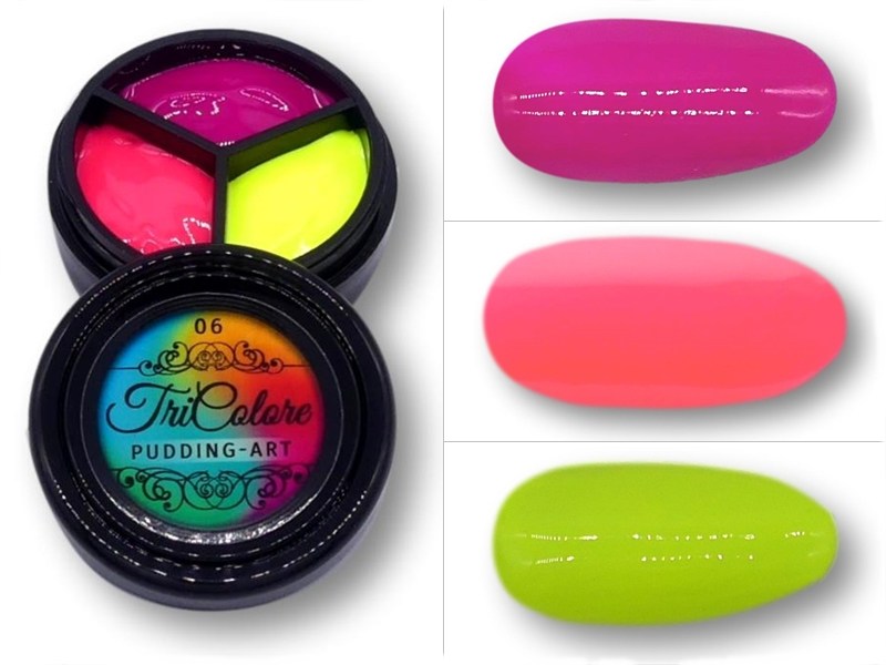 Variante 06: Neon-Pink, Magenta, Neon-Gelb - drei cremige Farbgele in einem Tiegel mit höchster Deckkraft.