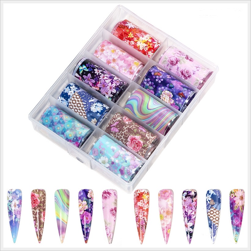 10 x Transferfolien mit farbenfrohen Blumenmustern. Die Folie ist deckend.