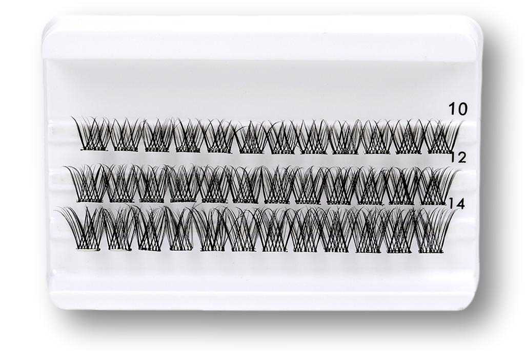 ENDLESS NIGHT sind füllige, aufgefächerte Wimpern im x-cross-C-Curl-Style. Pro Box sind jeweils 36 Segmente (12 Stück pro Reihe) in den Längen 10, 12 und 14 enthalten. Somit kannst du einen Verlauf von kurz am Augen-Inneren bis hin zu super-lang am äußeren Wimpernkranz setzen.