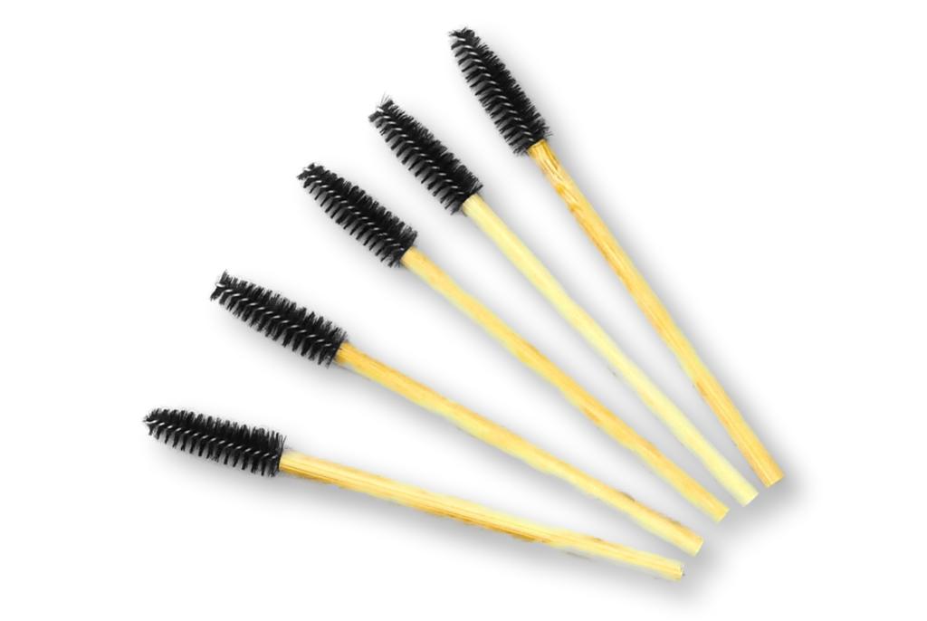 Inhalt: 5 Wimpern-Bürstchen im Tütchen / Nachhaltigkeit durch Bambus-Griff