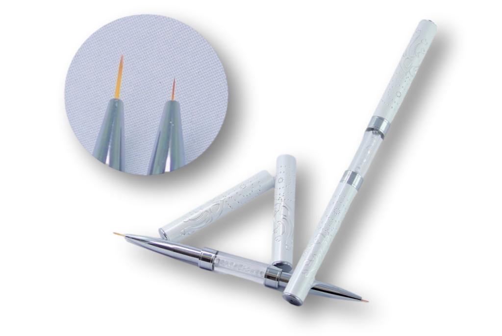 Er hat zwei Seiten - jeweils mit Kappe zu schließen. Die Pinselhaare sind 5 mm und 9 mm lang.