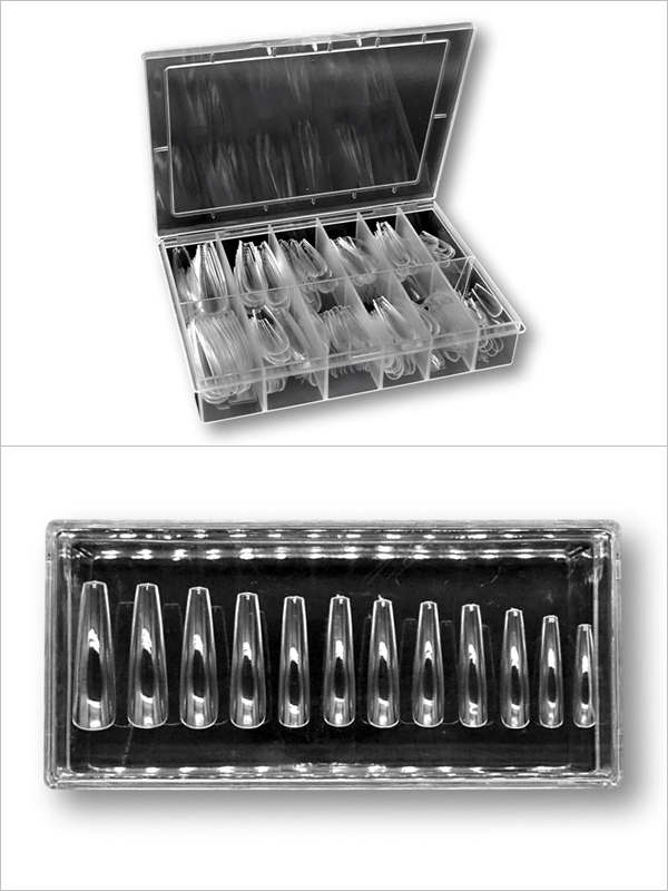 XXL-Easy Long-Tips in der Ballerina-Form. In einer Box sind 240 Tips in 12 Größen enthalten.