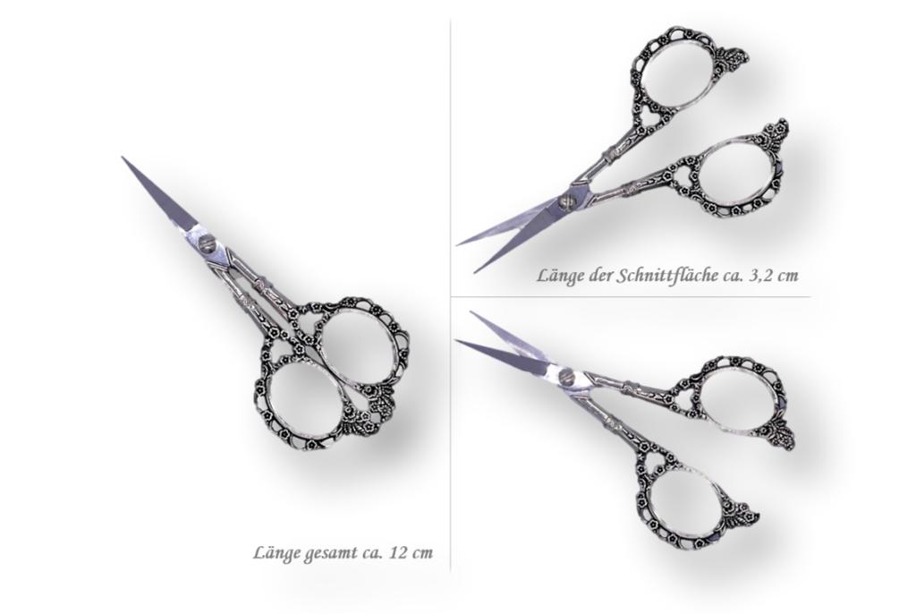 Diese Vintage-Schere - silberfarben - ist extrem scharf und spitz.