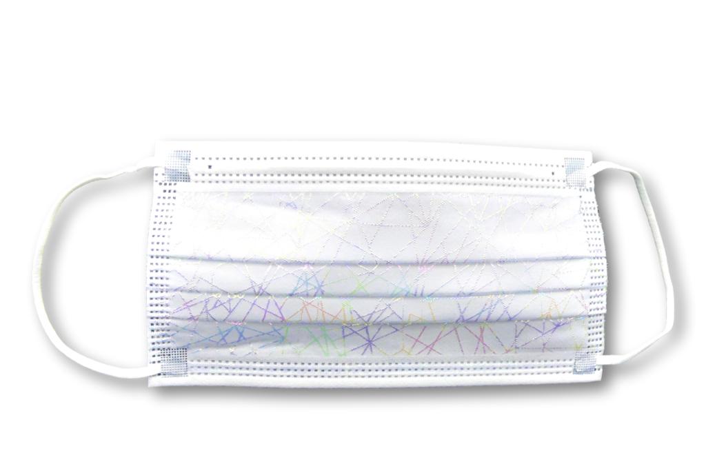 Lieferumfang: 10 x Mund- und Nasenschutz in weiß mit silber-holo Streifenmuster